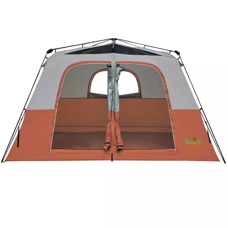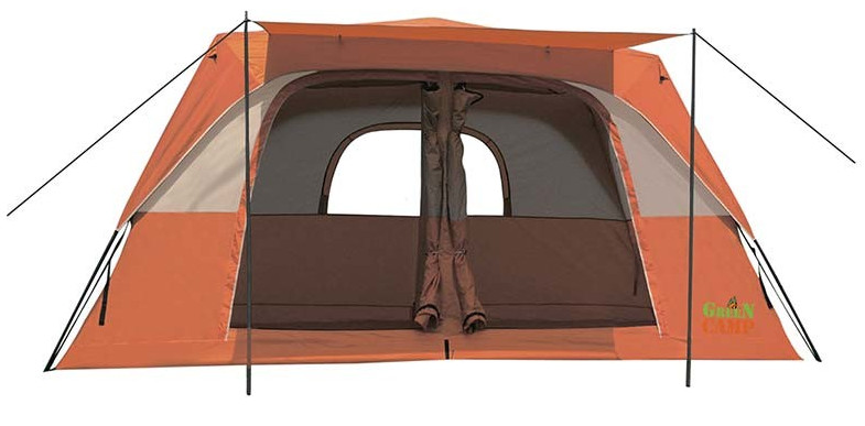 Green Camp GC-1610 — це двошаровий кемпінговий намет преміум-класу, розроблений для тривалого відпочинку великих компаній. Завдяки напівавтоматичній системі складання, процес встановлення цього масштабного намету стає значно простішим та швидшим. Конструкція поєднує в собі легкість фібергласових дуг та міцність сталевих опор, що робить її стійкою до вітрових навантажень.