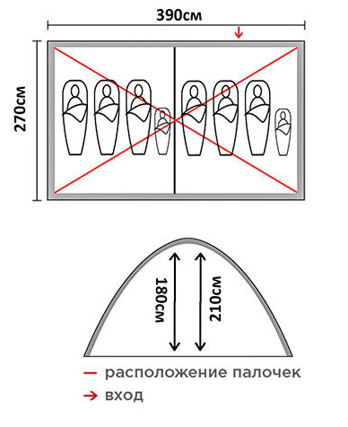 | Особливості | Антимоскітна сітка / Вентиляційні вікна / Внутрішні кишені / Кріплення для ліхтаря / Проклеєні шви / Система вентиляції / Штормові відтяжки | |