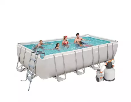 Збірний прямокутний каркасний басейн Bestway 56466 549х274х122см. серії Power Steel (Bestway) з пісочним фільтр-насосом, сходами, підстилкою і тентом.