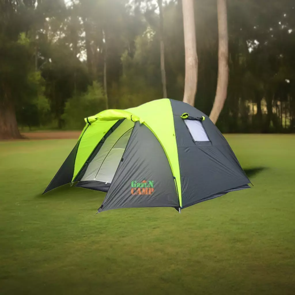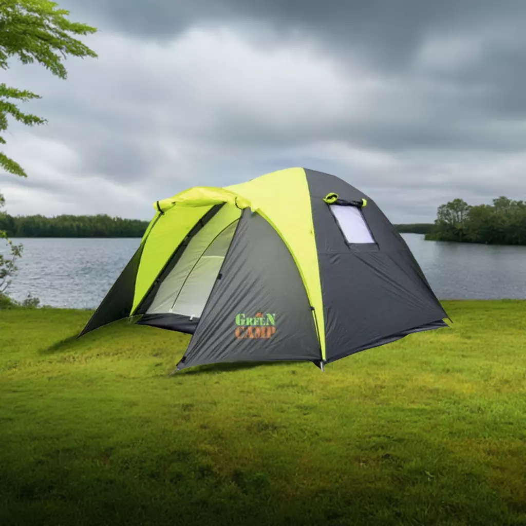 - Тримісний намет Green Camp 1011-2 сірий з салатовим