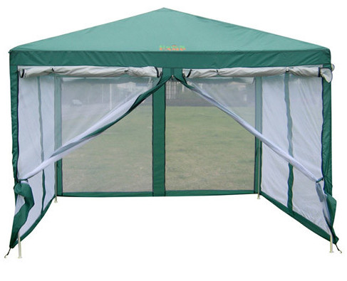 Додатково тент комплектується шторками з щільного, водонепроникного поліестеру, який захистить від дощу і поривів вітру в разі негоди. Матеріал непромокальний, але при цьому відмінно пропускає повітря і забезпечує комфортний мікроклімат всередині шатра. Шторки закриваються на блискавці і при необхідності фіксуються у відкритому положенні за допомогою липучок.