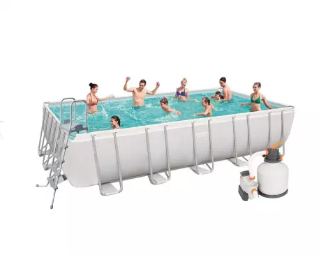 Сборный прямоугольный каркасный бассейн Bestway 56471 671х366х132см. серии Power Steel (Bestway) с песочным фильтр-насосом, лестницей, подстилкой и тентом.
